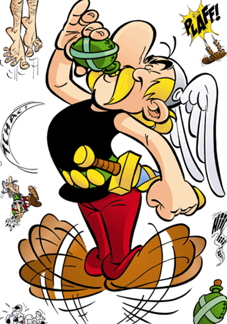 For readers who are familiar with the Asterix and Obelix series, the magic potion refers to the potion brewed by Getafix, that gives the Gaulish warriors superhuman strength.