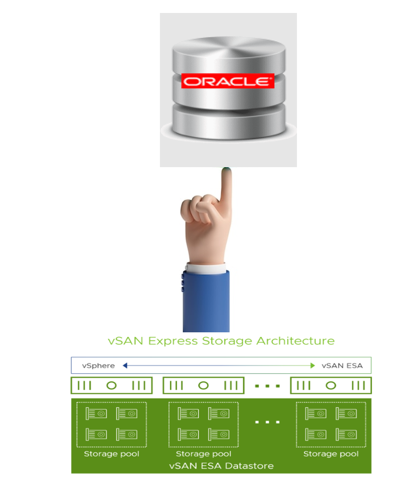 Enabling, sustaining, and ensuring the highest possible performance along with continued application availability is a major goal for all mission critical Oracle applications to meet the demanding business SLA’s which can be easily achieved on vSAN 8 vSAN Express Storage Architecture (ESA).