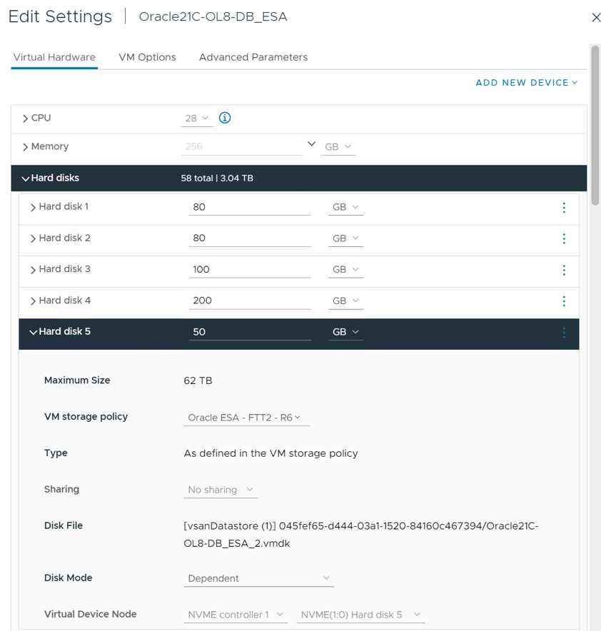 This blog is an exercise to showcase the performance advantages of using vSAN 8 vSAN Express Storage Architecture (ESA) for business-critical production Oracle workloads.